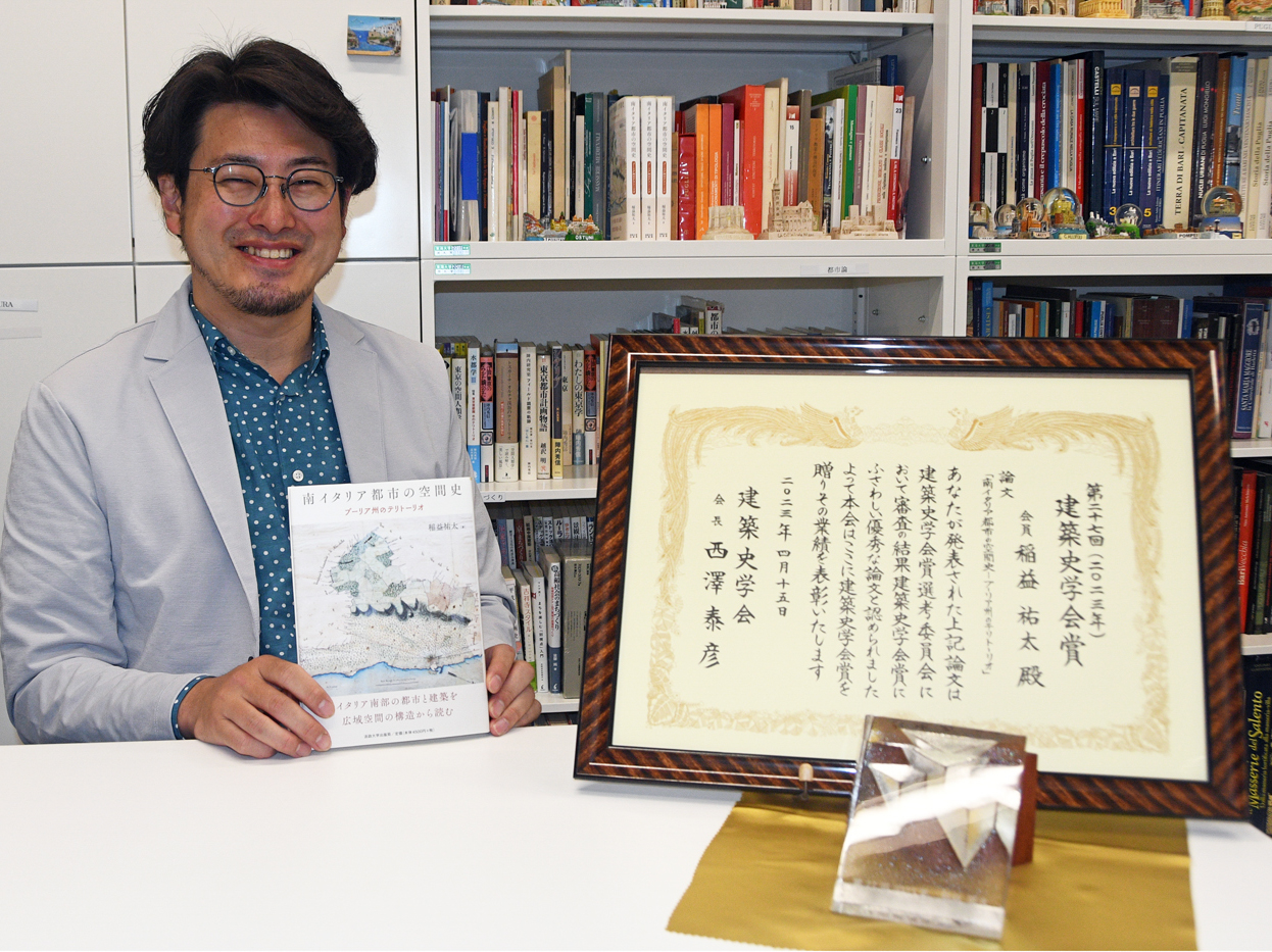 2023/06/01建築都市学部建築学科の稲益祐太准教授が、昨年度発行された著書『南イタリア都市の空間史―プーリア州のテリトーリオ』(法政大学出版局)で建築史学会賞を受賞。4月15日に茨城県・つくば国際会議場で表彰式と受賞スピーチが行われた。