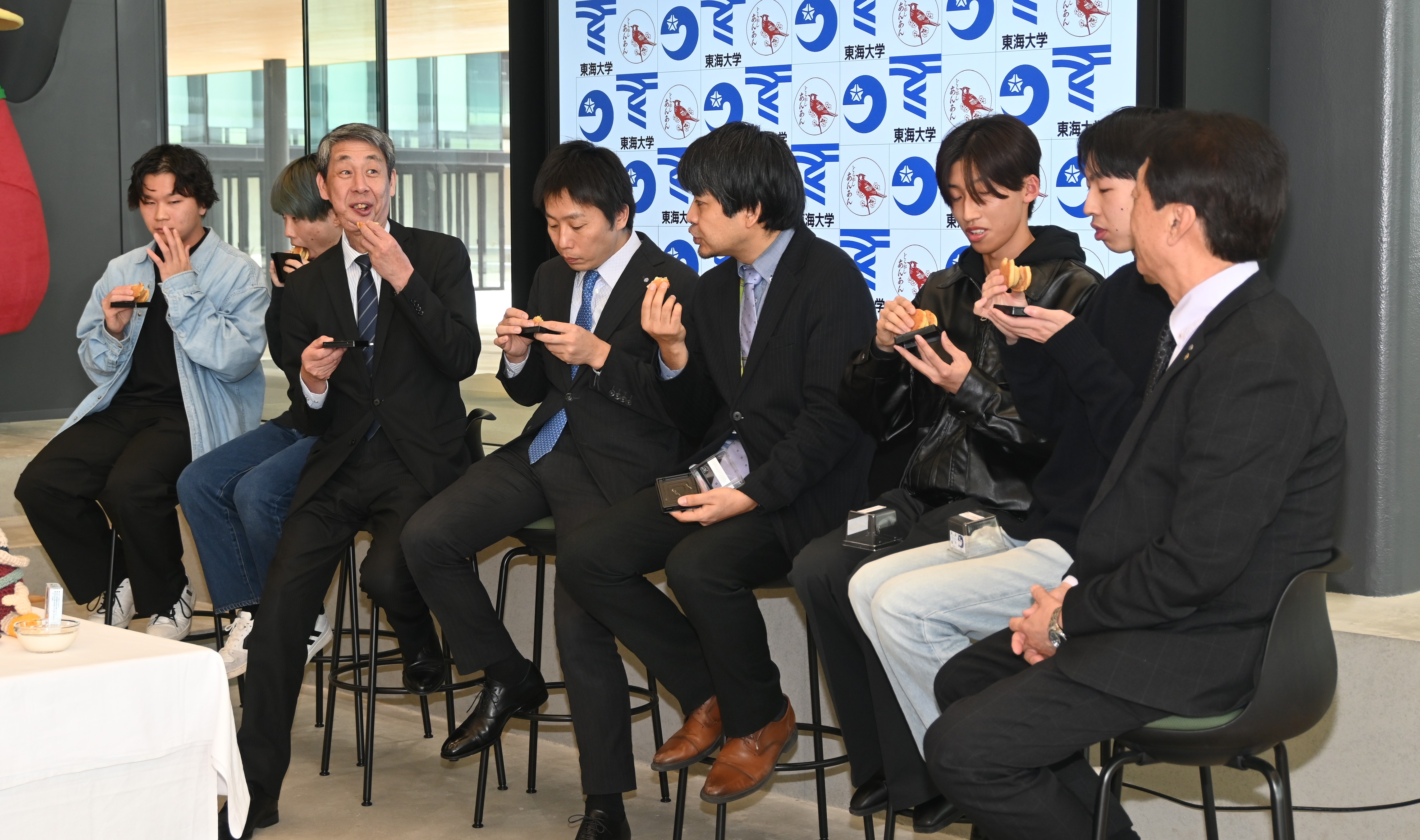 2025/04/01農学部食生命科学科の木下英樹准教授と商品開発サークルの学生がこのほど、熊本県大津町、どら焼き専門店「どらがしあんあん」と、東海大学がこれまでの研究によって見いだした乳酸菌入りの「大津町熟成からいもどら焼き」を開発。3月15日から6月までの期間限定で、熊本市・サクラマチクマモトにある「どらがしあんあん」で販売されている。