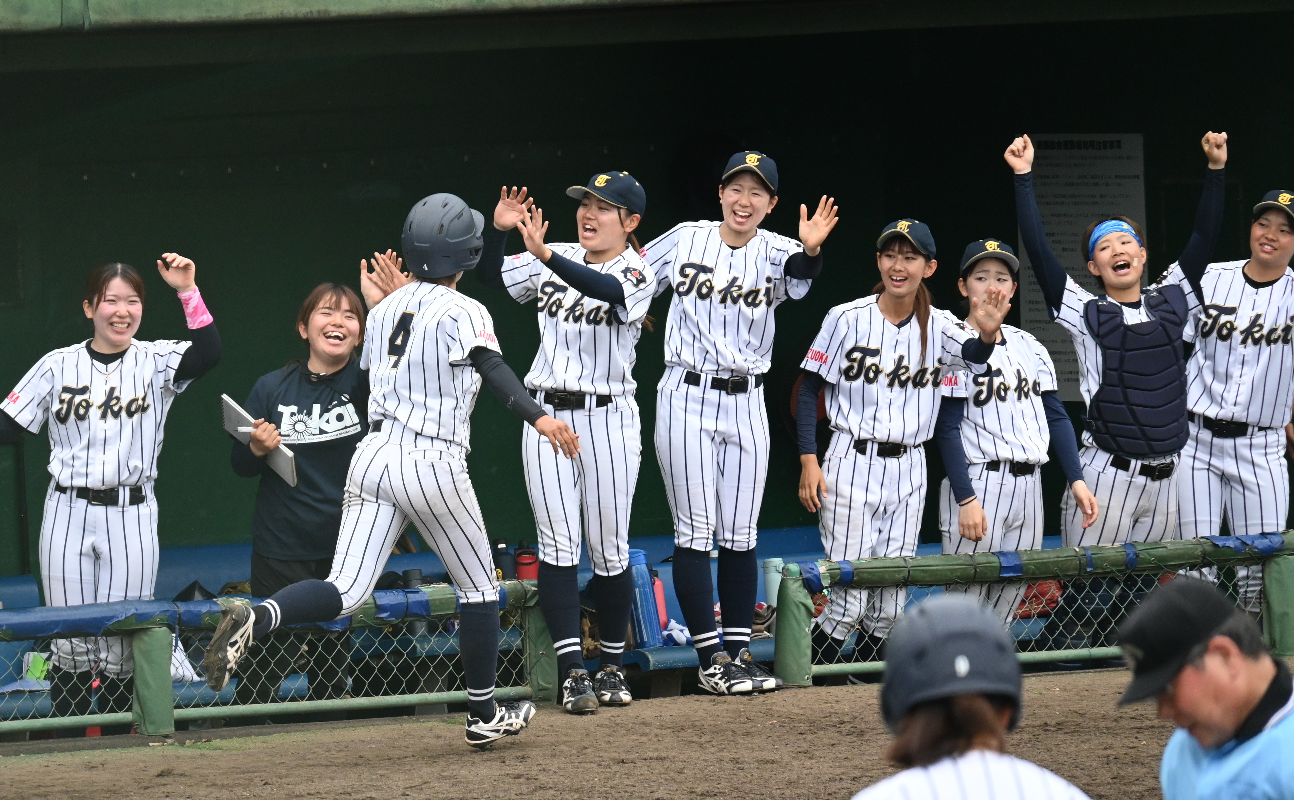 創部1年目の昨年は、弓桁義雄監督(付属静岡翔洋高校中等部教諭)が指揮官を兼任する静岡翔洋高と合同チームで4月のGIANTS杯福島大会に出場。8月には静岡交歓会 富士山大会も主催して実戦を積んできた。弓桁監督は、「大学の公式戦に出場できなかった分、じっくり練習してきました」と振り返る。細谷南花マネージャー(人文学部2年)は、「全体練習の後にもノックを志願したり、走り込んだり、遠征先のホテルの裏で素振りをしている姿も見てきました。野球が好きで、負けたら悔しくて、そうした思いが選手たちを動かしていると感じています」と語る。