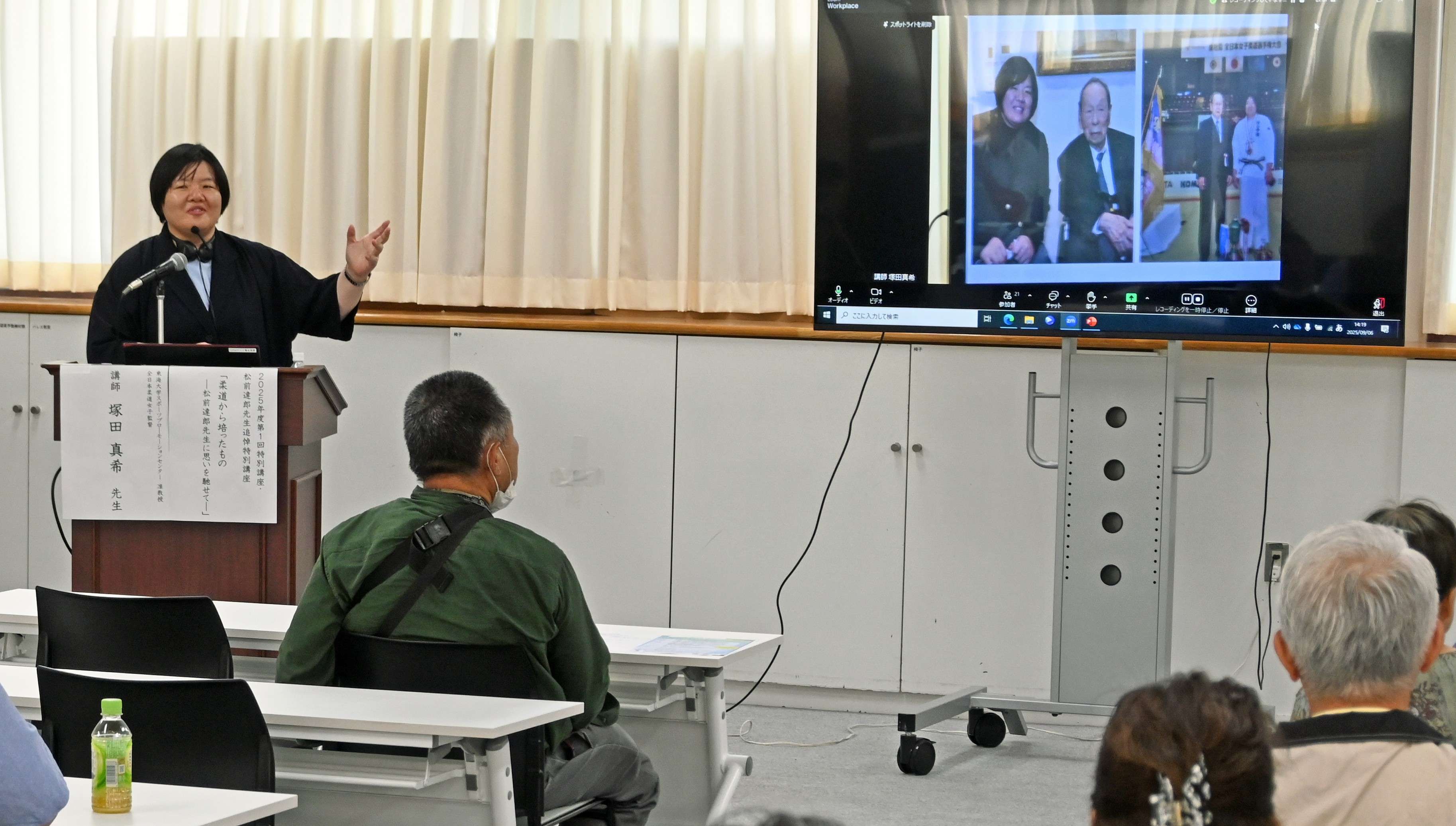 2025/10/01学校法人東海大学望星学塾で9月6日に、特別講座「柔道から培ったもの―松前達郎先生に思いを馳せて―」が開催された。昨年9月8日に逝去した松前達郎前総長を追悼する企画で、柔道女子日本代表の塚田真希監督(スポーツプロモーションセンター准教授)が講師を務め、会場とオンライン合わせて約45人が聴講した。