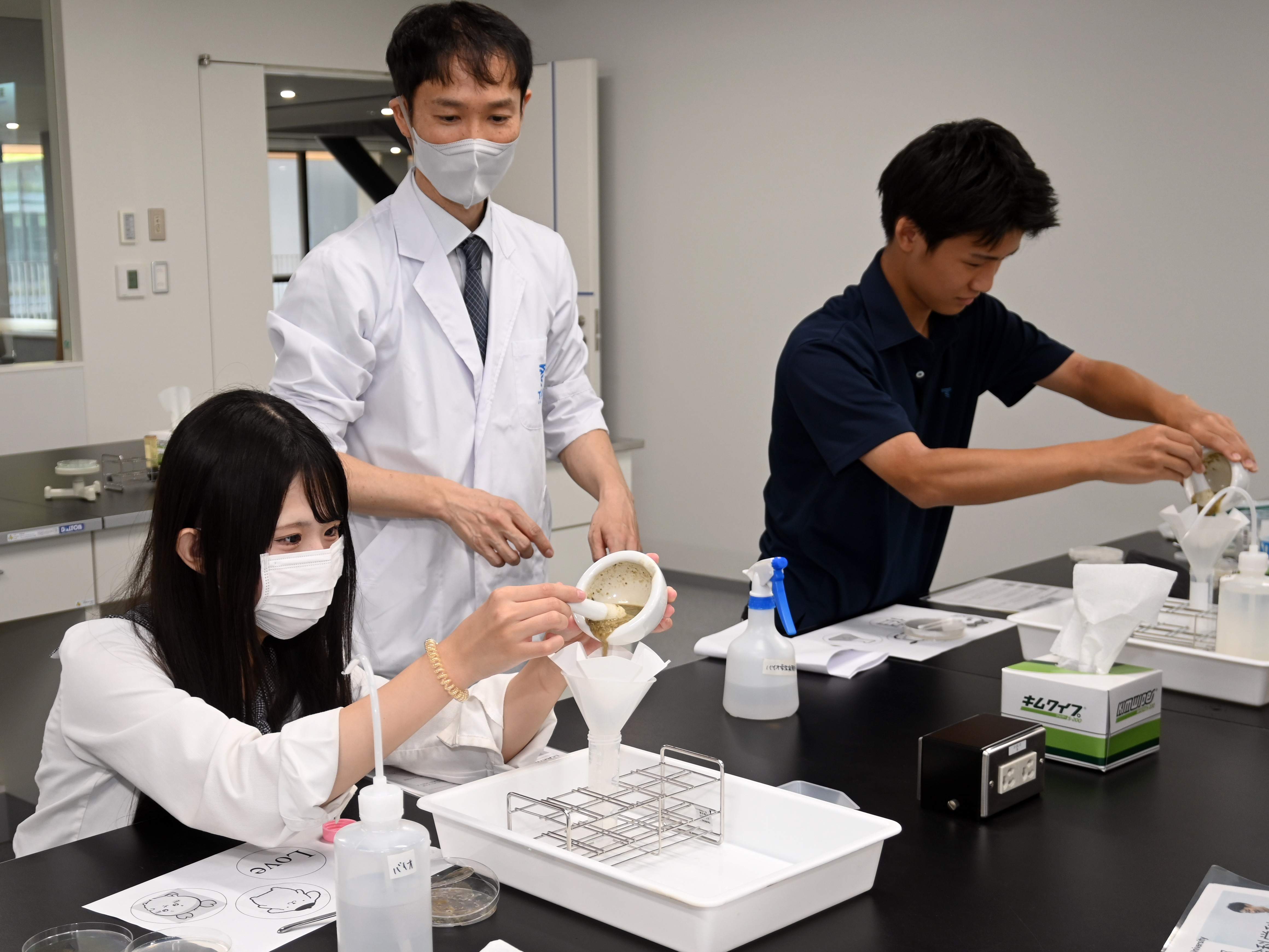2025/10/01九州キャンパス(熊本・阿蘇くまもと臨空キャンパス)で9月17日に、付属熊本星翔高校の2年生を対象とした「文理融合学部・農学部体験授業」が実施された。両学部の学びを体験し、興味・関心を持ってもらうとともに、進路選択の参考にしてもらおうと同高とのコラボレーション企画として初めて行われたもの。両キャンパスを訪れた約200人ずつの生徒たちは、学部ごとに用意された9つのプログラムの中から2つの授業を選んで受講した。