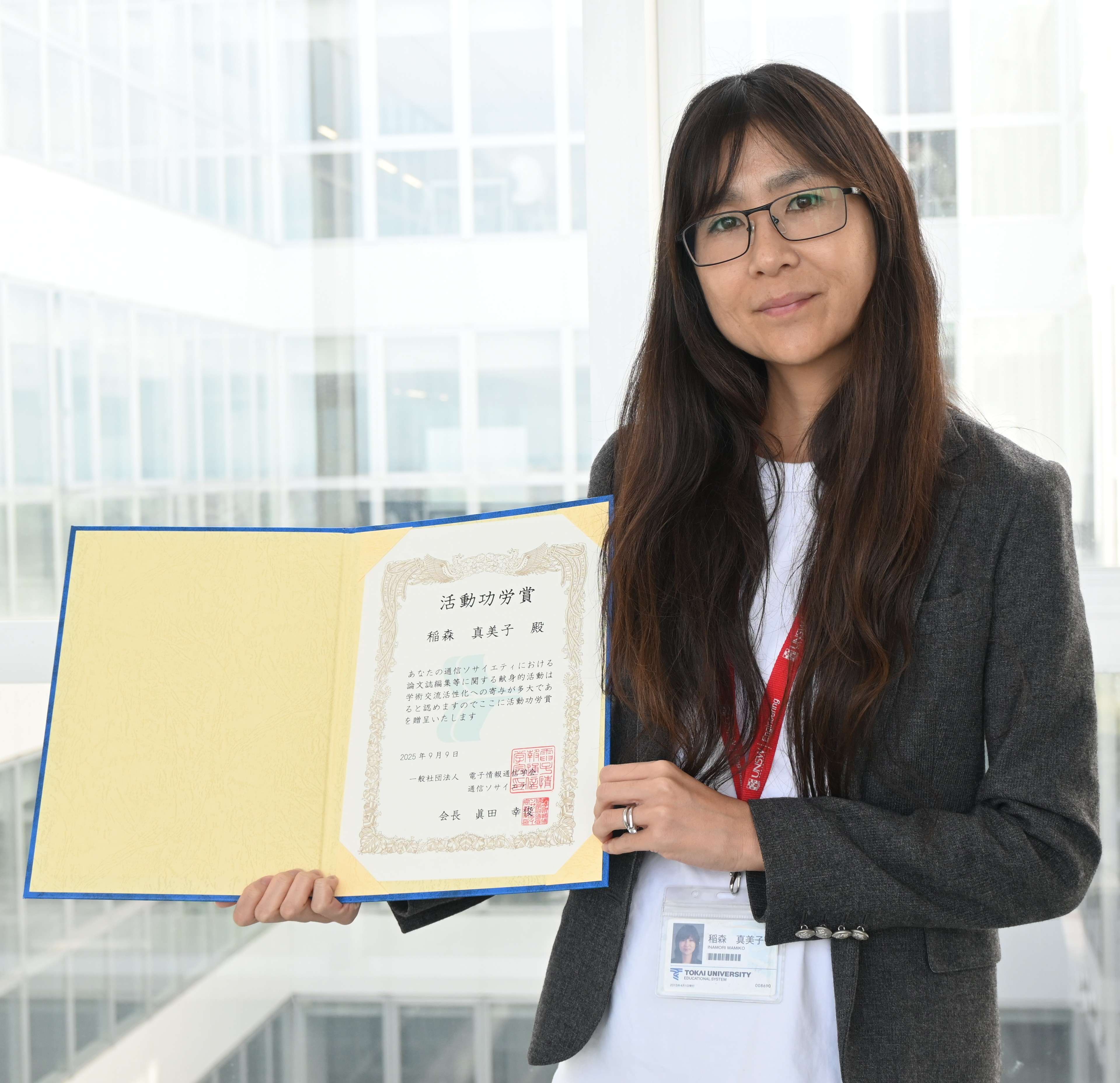 稲森准教授はこれまでも、女性エンジニアの活躍の場を広げる活動を展開。同学会の研究専門分野グループ「通信ソサエティ」では、研究専門委員会や企画の運営を担ってきた功績で、これまでも活動功労賞を受賞している。2020年からは同学会が発行する英文論文誌の編集委員を務めており、今回はこの論文誌編集に対する功績が評価された。