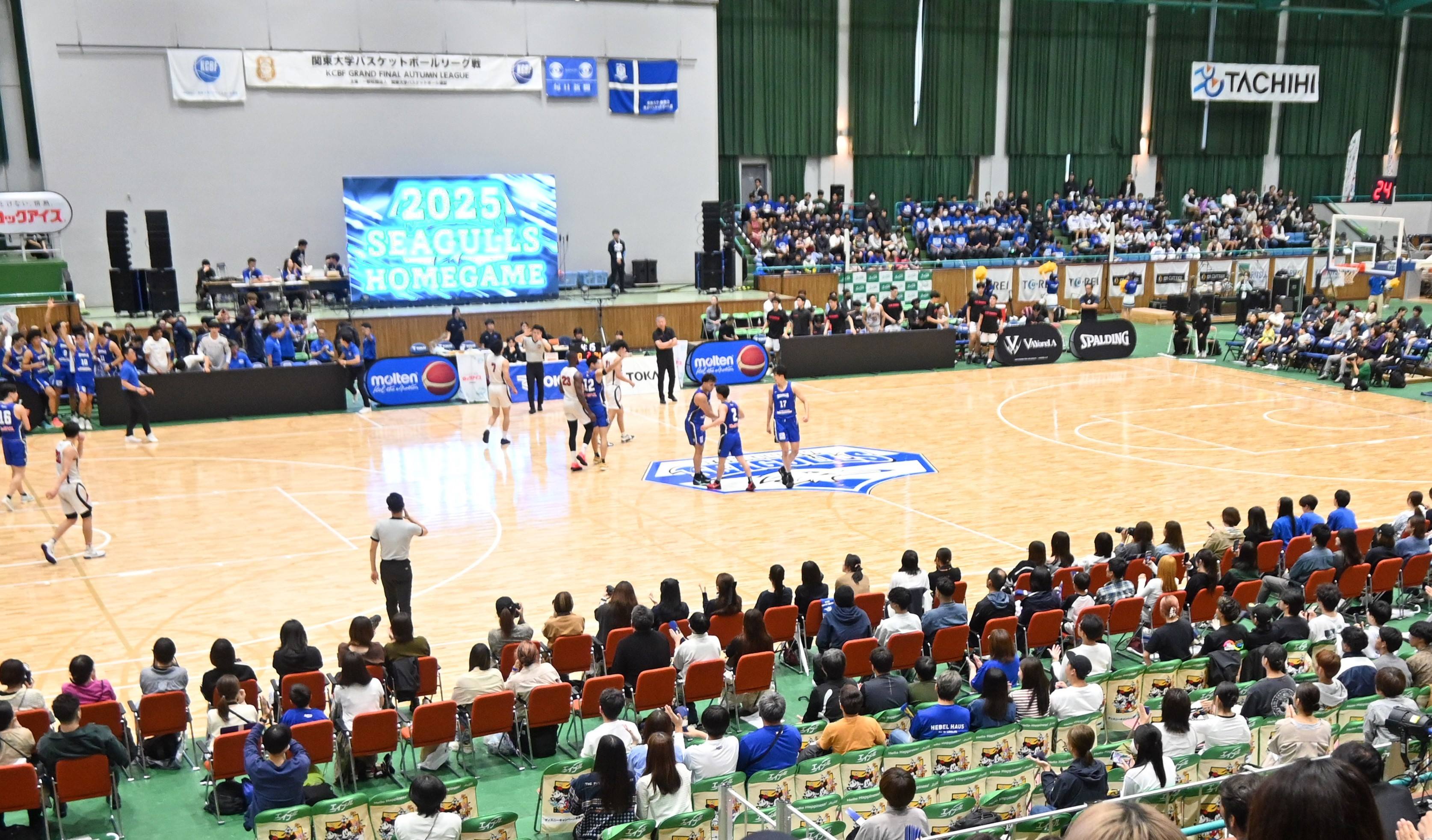 2025/11/01体育学部の学生が10月11、12日に、湘南キャンパス総合体育館で開催された関東大学バスケットボールリーグ戦を、男子バスケットボール部のホームゲームとして運営した。学生約120人が運営に携わり、2日間で約3000人が来場した。