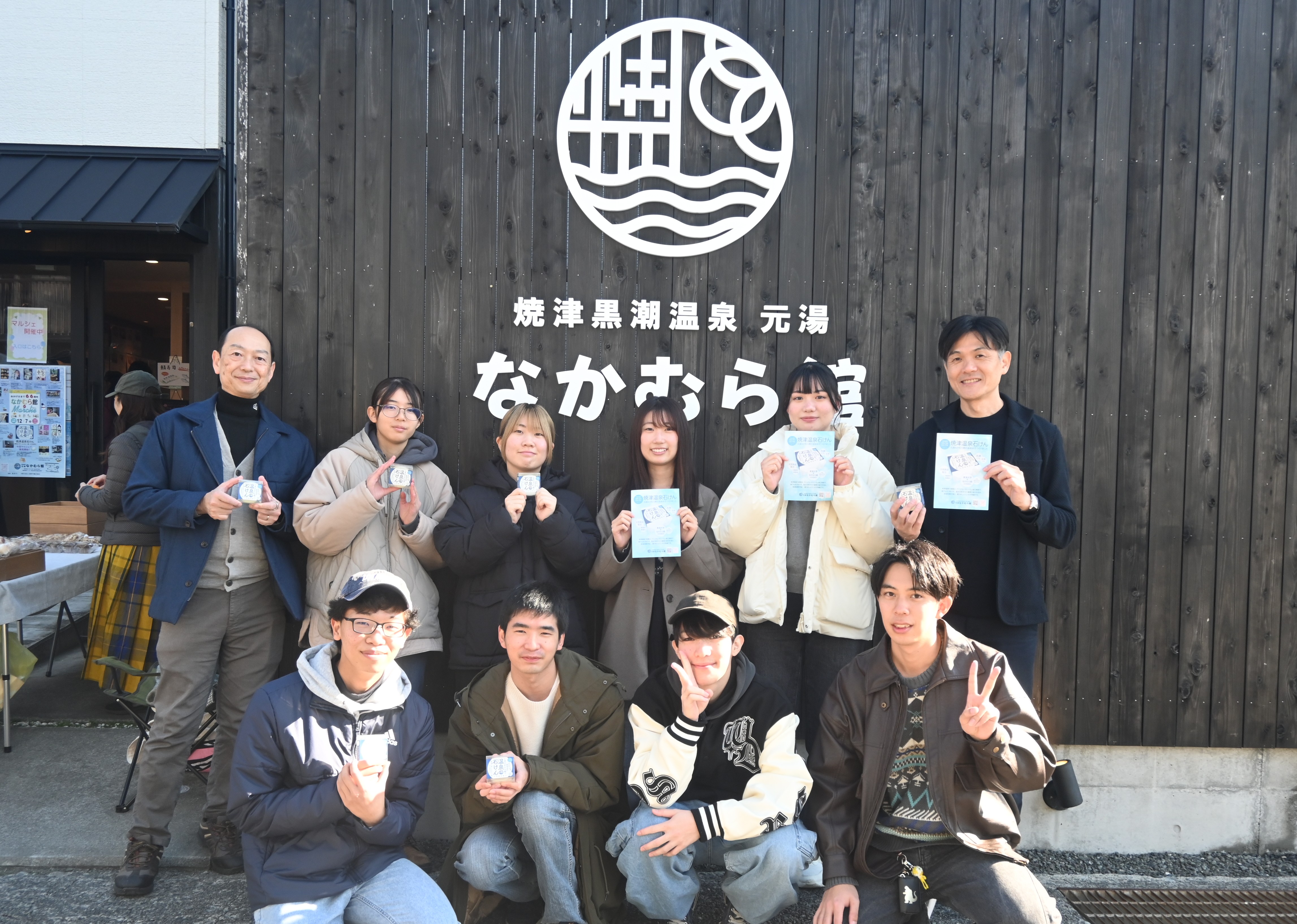 2026/01/01人文学部の学生有志がこのほど、静岡県焼津市の有限会社なかむら館と共同で、温泉水を活用した「元湯なかむら館の温泉石けん」を開発。昨年12月7日に、「焼津温泉元湯なかむら館」で開催されたマルシェで販売がスタートした。