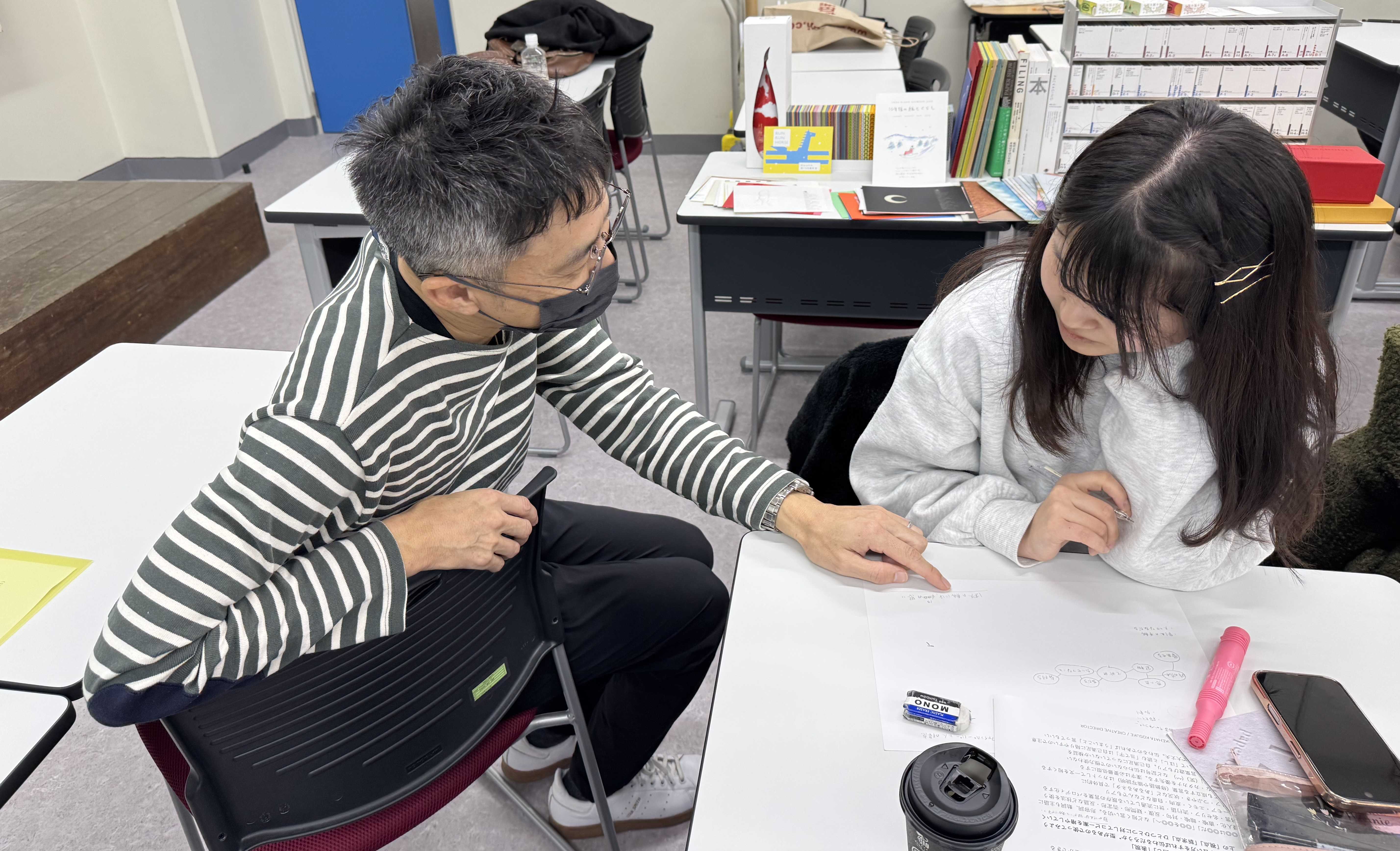 2026/01/01文化社会学部広報メディア学科の野口将輝准教授のゼミナールが昨年11月27日、湘南キャンパスで企業のキャッチコピーを考案するワークショップを実施した。コピーライターの池端宏介氏から提案を受け、高級特殊印刷用紙「ファインペーパー」を扱う株式会社竹尾のキャッチコピー作成に挑戦したもの。