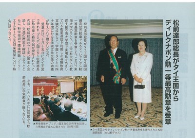 1996年10月15日松前達郎総長にタイ王国からディレクナポン勲一等最高勲章授与